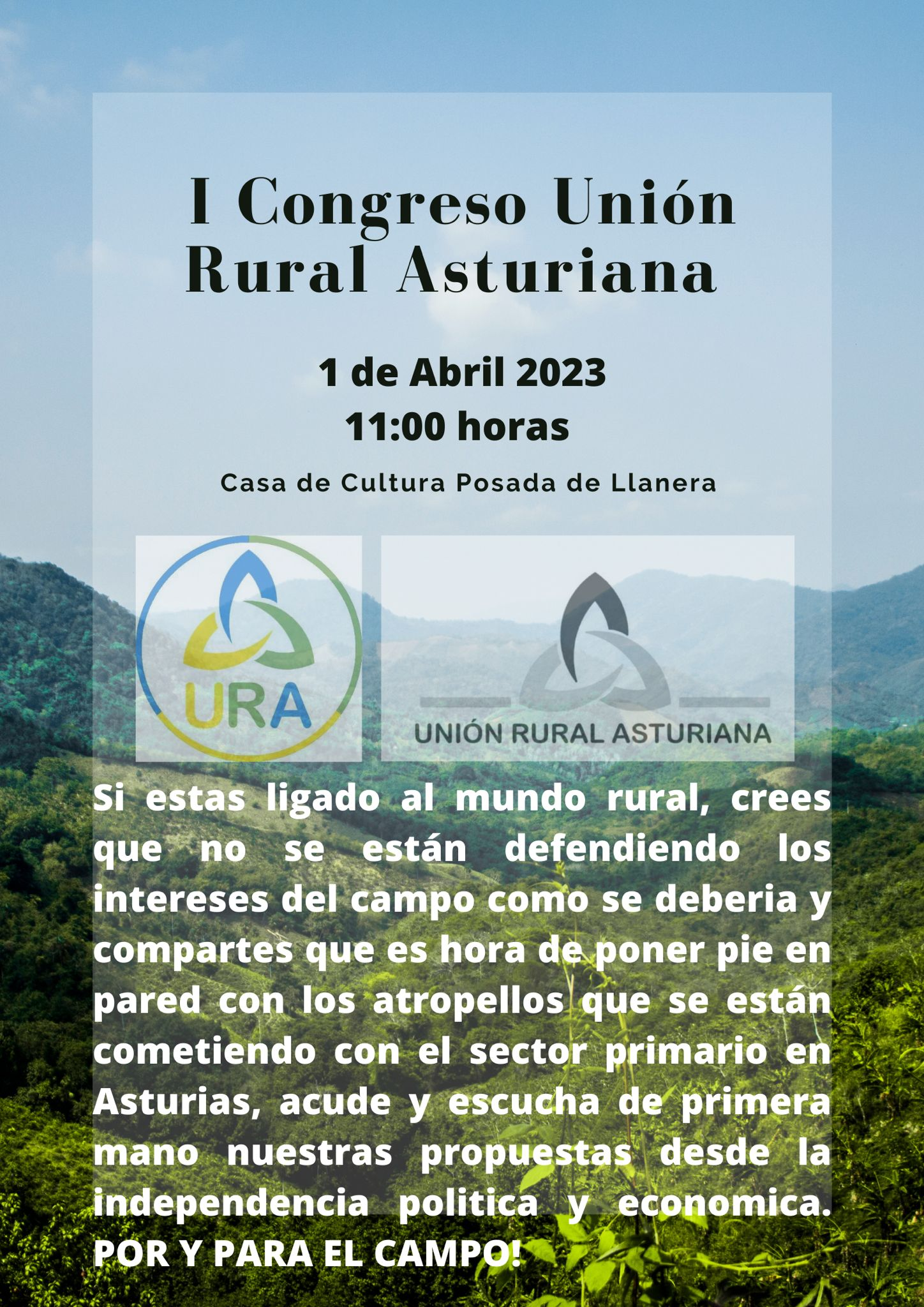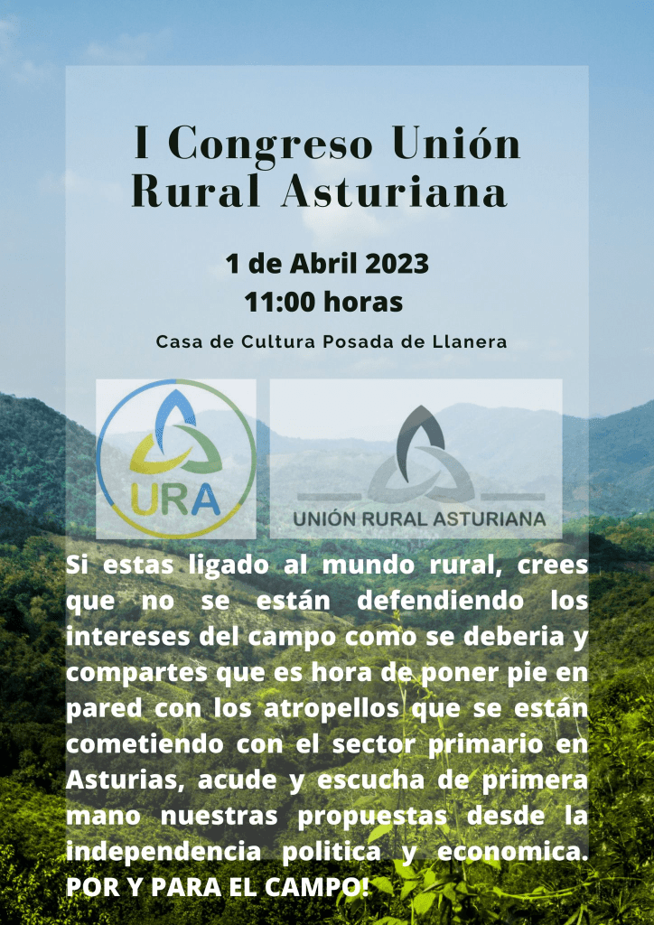 El pasado sábado 1 de abril se celebró en la Casa de Cultura de Posada de Llanera el I Congreso de la Unión Rural Asturiana (URA), organización profesional agraria independiente que nace al amparo de la plataforma Asturias Ganadera en el marco de las movilizaciones del sector contra las políticas agrarias y territoriales que están acabando con el campo asturiano. Al acto asistieron algunos miembros de la Comunión Tradicionalista y del Círculo Cultural Juan Vázquez de Mella.