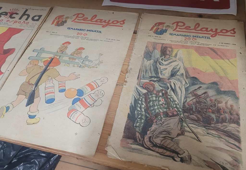 Con los requetés estaba también un «pelayo», niño que hacía poco había cumplido los trece años. Un hombrecito serio y sereno que servía de enlace, y todos los amaneceres, montado en un borriquillo gris, bajaba al pueblo próximo, silbando el «Oriamendi», a recoger los periódicos y paquetes.